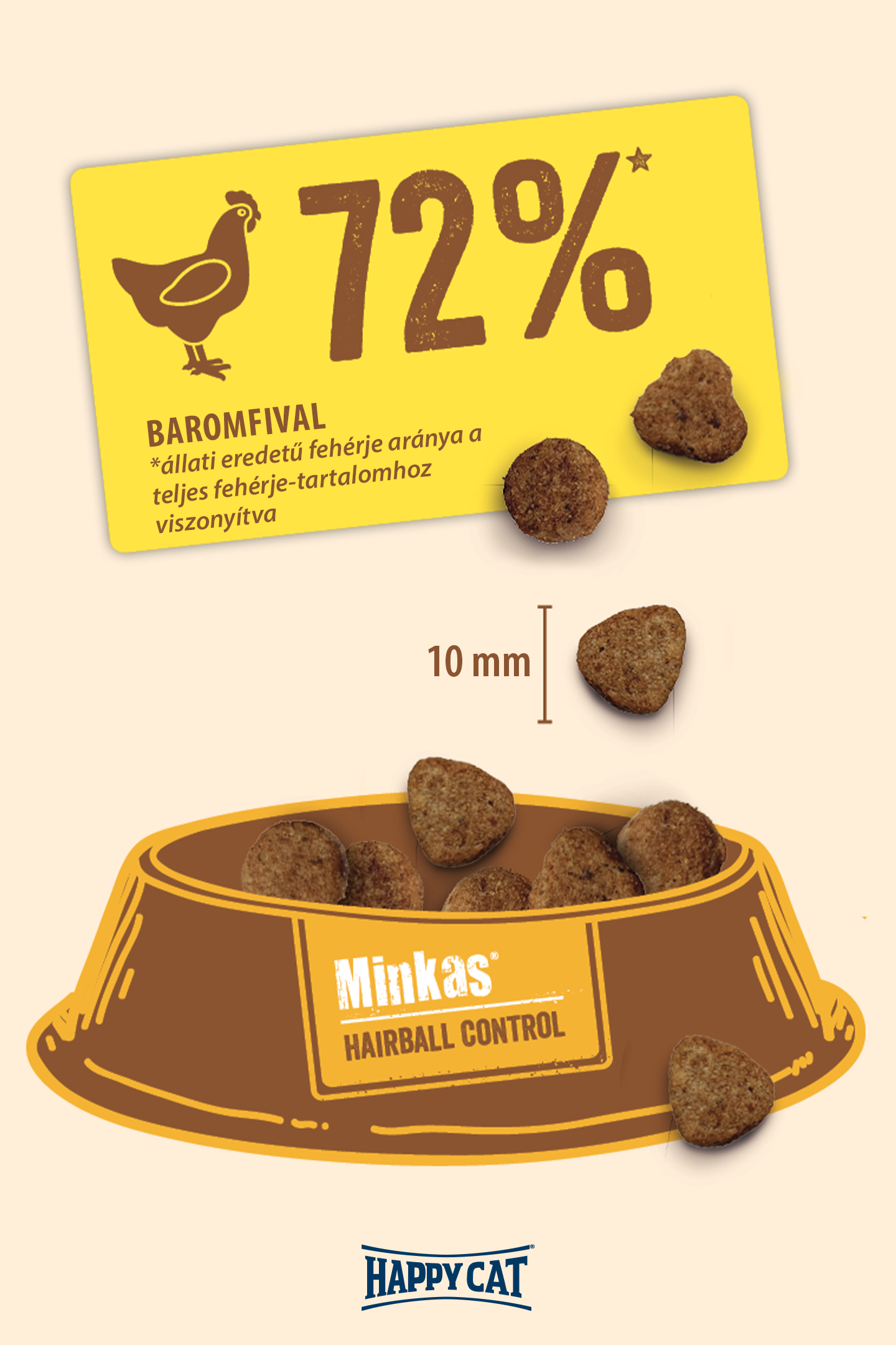 A Happy Cat Minkas Hairball Control különleges rostokkal került ellátátásra. Ezek segítenek csökkenteni a szőrlabdák számát, valamint hozzájárulnak a gyomor-és bélrendszeren keresztül történő kíméletes kiválasztáshoz. Ez a kiegyensúlyozott teljes értékű eledel ideális felnőtt macskák számára, és mindent megad a bársonytalpúnak, amire szüksége lehet. Az egészséges és hosszú macskaéletért. Az értékes állati fehérjék magas arányát tartalmazó receptünk 100%-ban kiegyensúlyozott és természetes. Ez az ízletes szárazeledel tele van vitaminokkal és ásványi anyagokkal, valamint támogatja az immunrendszert. Receptjeink természetesen nem tartalmaznak mesterséges aromát vagy tartósítószert.