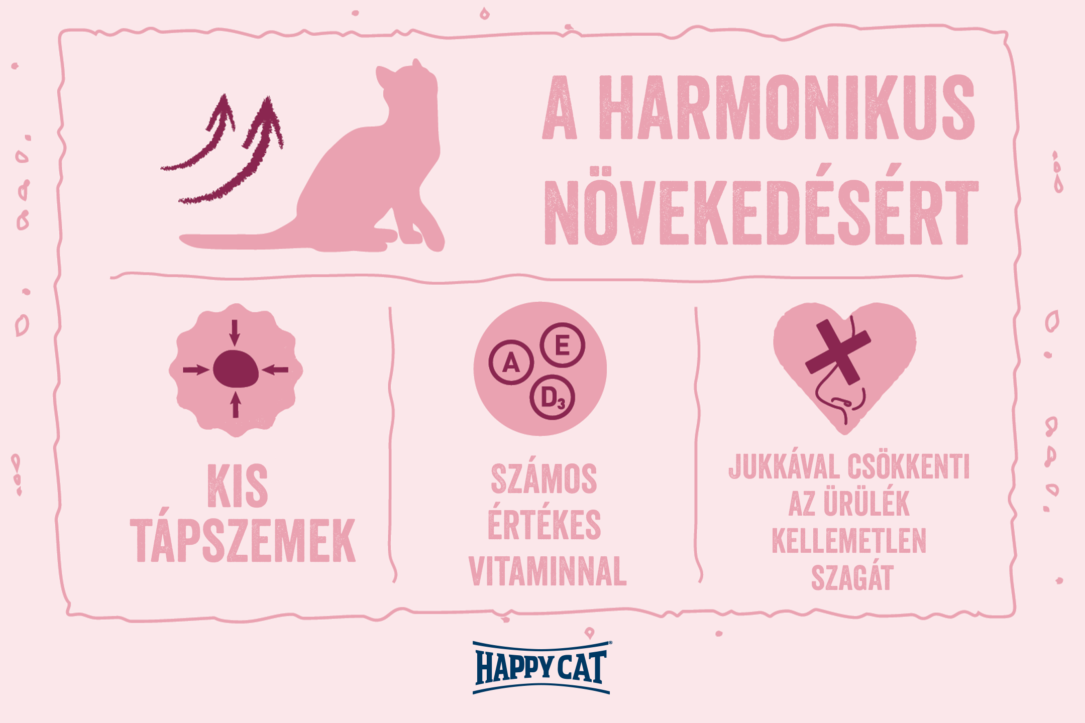 Mindig biztosíts friss vizet egy tálban, az eledeles táltól távolabb. Az egyes macskák eltérő egyéni igényeinek megfelelően az eledel mennyisége akár 15%-kal is csökkenthető vagy növelhető. A felnőtt súly elérésekor érdemes fokozatosan a megfelelő Happy Cat Adult eledelre váltani.