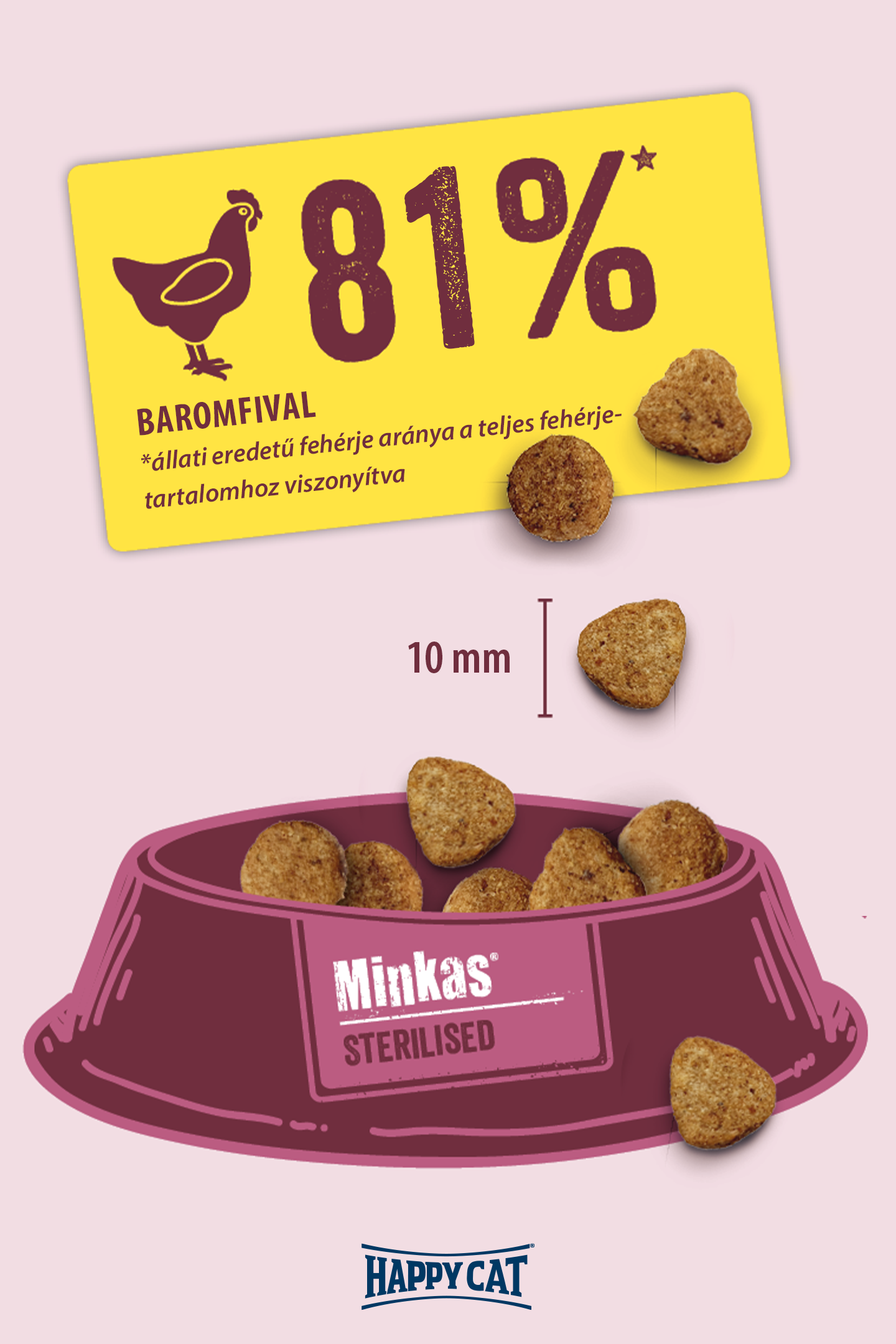 A Happy Cat Minkas Sterilised (Baromfi) kifejezetten az ivartalanított macskák igényeihez igazodik. Ez a kiegyensúlyozott teljes értékű eledel csökkentett zsírtartalmával és a laktató rostok optimális arányával segít macskádnak megtartani ideális testsúlyát. Az értékes állati fehérjék magas arányát tartalmazó receptünk 100%-ban kiegyensúlyozott és természetes. Ez az ízletes szárazeledel tele van vitaminokkal és ásványi anyagokkal, valamint támogatja az immunrendszert. Receptjeink természetesen nem tartalmaznak mesterséges aromát vagy tartósítószert.