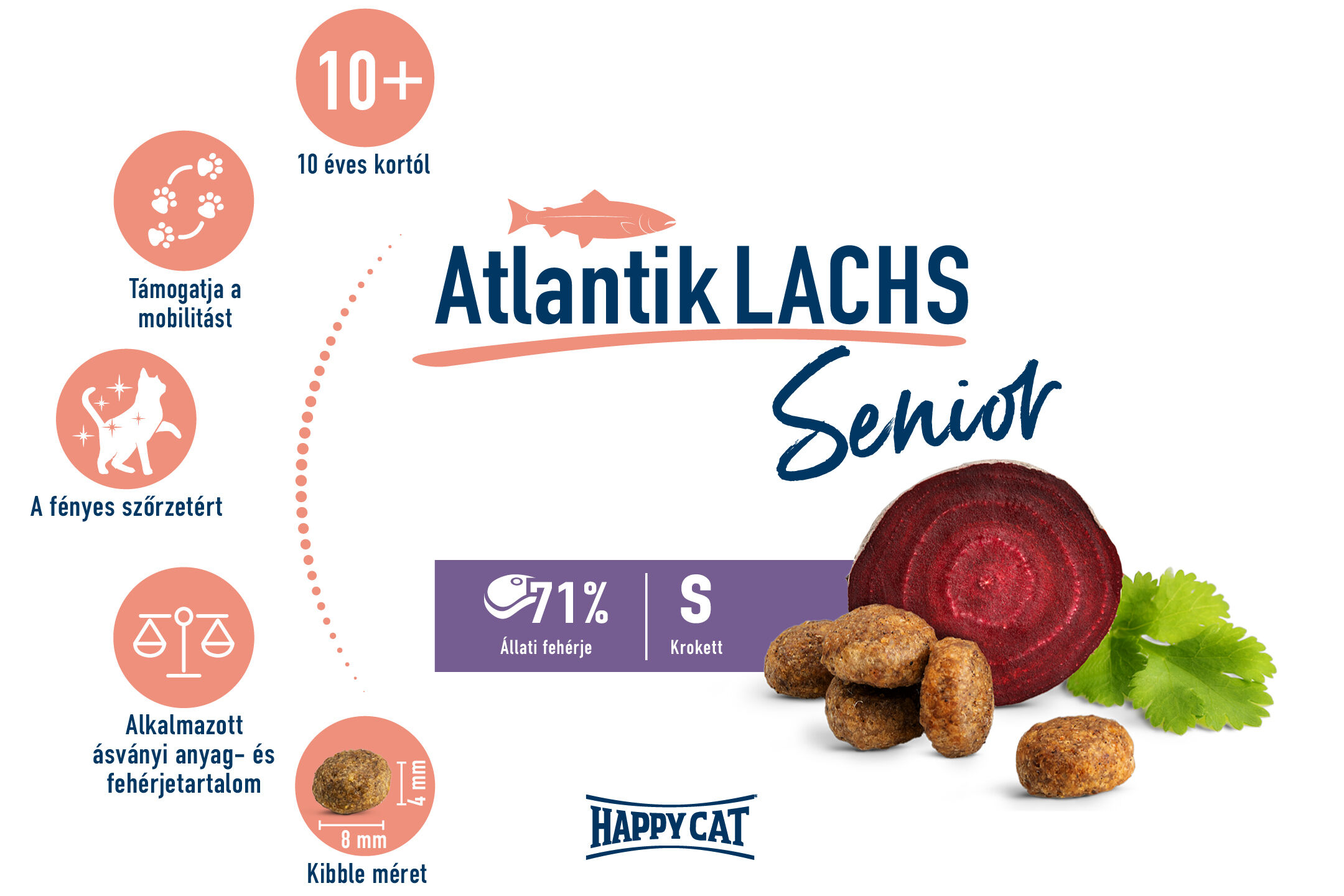 Az ízletes és könnyen emészthető lazac lédús céklával és finom korianderrel kombinálva képezi ennek a senior szárazeledelnek az alapját. Kifejezetten a 10 éves és idősebb bársonytalpúak igényeihez igazítva, a vitaminok és nyomelemek, például vas, réz és mangán tartalma magasabb, mint a felnőtt szárazeledeleké. Az idősebb macskáknak anyagcseréjük miatt ezekre fokozott szükségük van. Emellett a foszfor, kalcium és nátrium arányát is úgy állítottuk be, hogy az anyagcserét tehermentesítsük és az idős macska szerveit kíméljük. A macskák öregedési folyamata a szervek funkcionális korlátozottságához vezethet, ami például a veseműködést korlátozhatja. Ezért fontos, hogy a megfelelő táplálékkal és a megfelelő mennyiségű ásványi anyagokkal segítsük a szervek tehermentesítését.